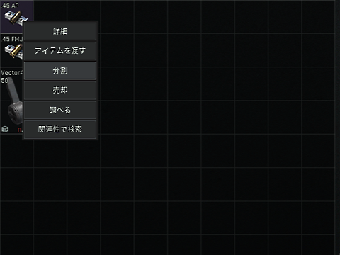 弾薬を右クリックして「分割」を選択し、半分に分割します。