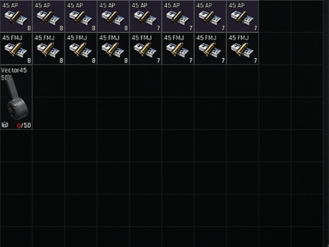 Vector45 が使用する .45口径弾と、50発装填のマガジンを例に説明します。