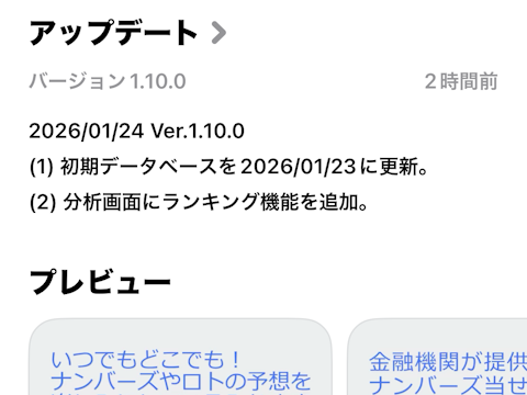 ナンバーズサーチ Ver.1.10.0 をリリースしました! ナンバーズサーチ Ver.1.10.0 をリリースしました。各ストアよりダウンロードできます。 変更点は以下のとおりです。Continue reading Amazon Android iOS iPad iPhone NUMBERS3 NUMBERS4 PayPay銀行 ジャパンネット銀行 ナンバーズ3 ナンバーズ4 ナンバーズサーチ ミニロト ロト6 ロト7 宝くじ